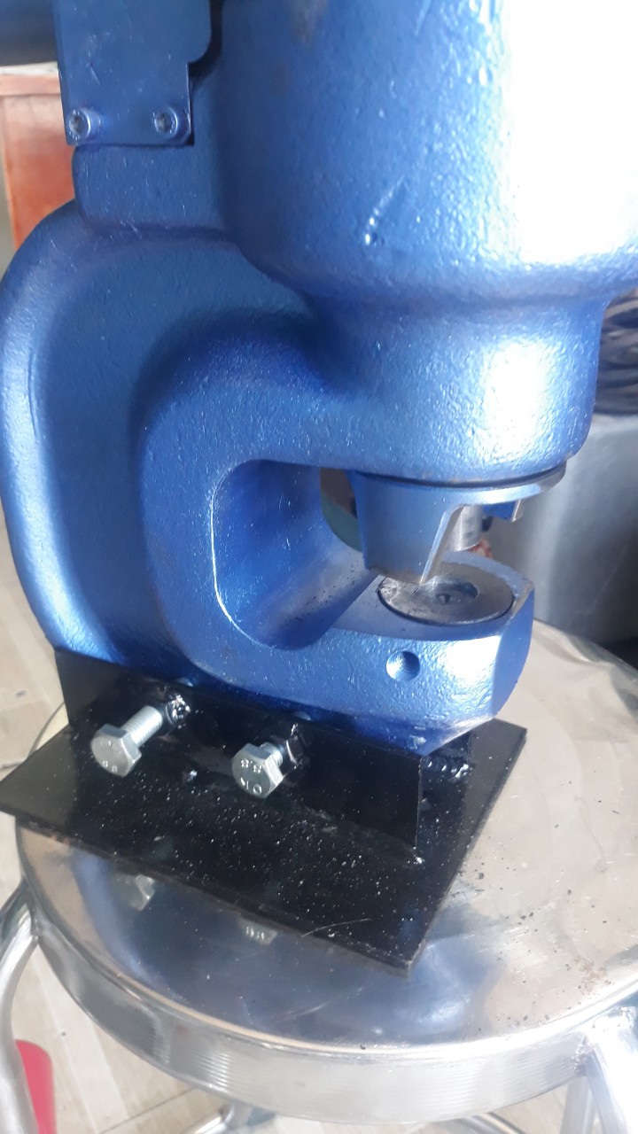 Đột cho sắt dầy 13mm, đường kính mũi lớn nhất 22mm, họng sâu 60mm.