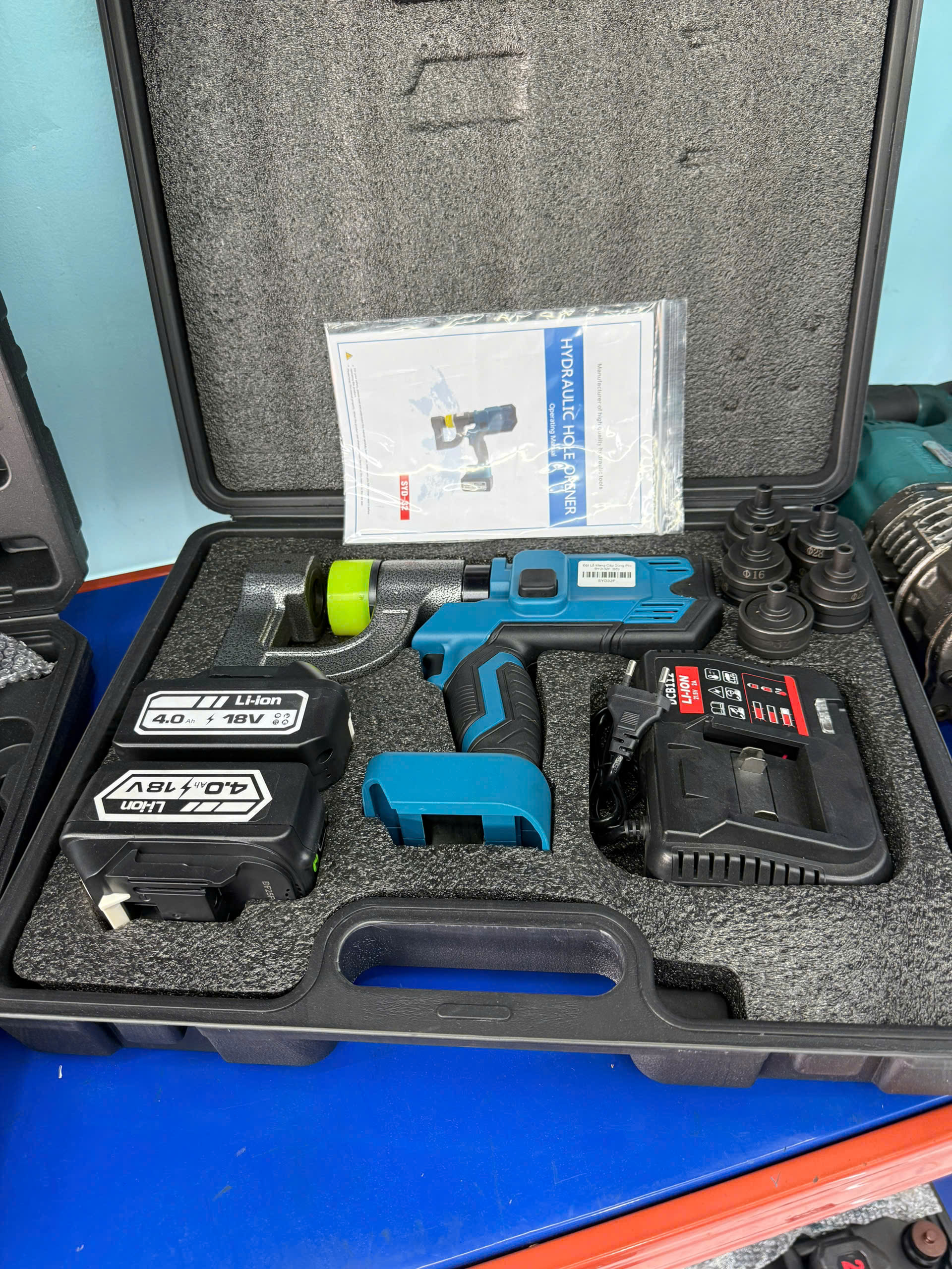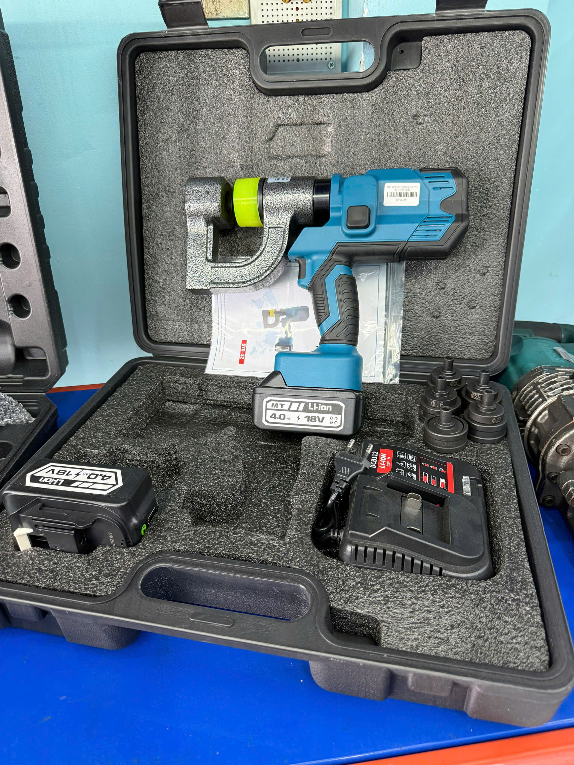 Máy Bấm Lổ Thang Máng Cáp Pin SYD-32F → nhẹ nhàng hơn, tiện mang ra công trình.