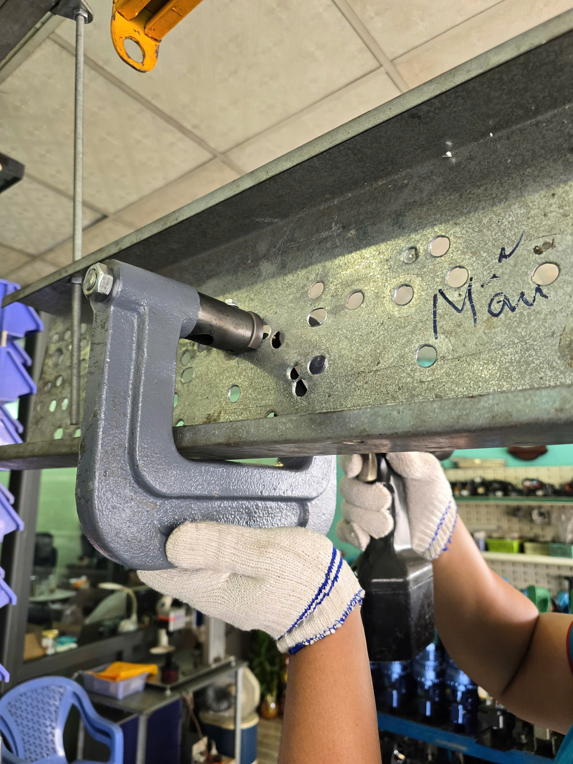 Trong quá trình thi công trên cao, việc khoan lỗ xà gồ luôn là một thử thách lớn, đặc biệt khi xà gồ đã được lợp tôn. Người thợ thường gặp khó khăn vì không có điểm tựa để tạo lực khoan, dẫn đến mất nhiều thời gian và tiềm ẩn nguy cơ mất an toàn.