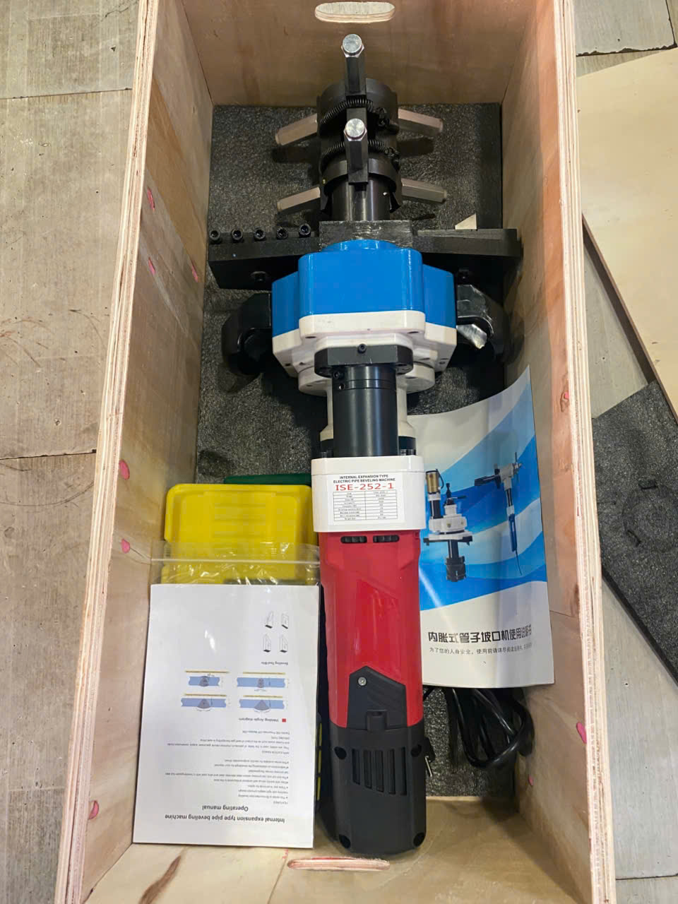 Độ dày của ống 20mm - có 3 dao đi kèm máy: dao vát phẳng, dao 30 độ và dao 37.5 độ.