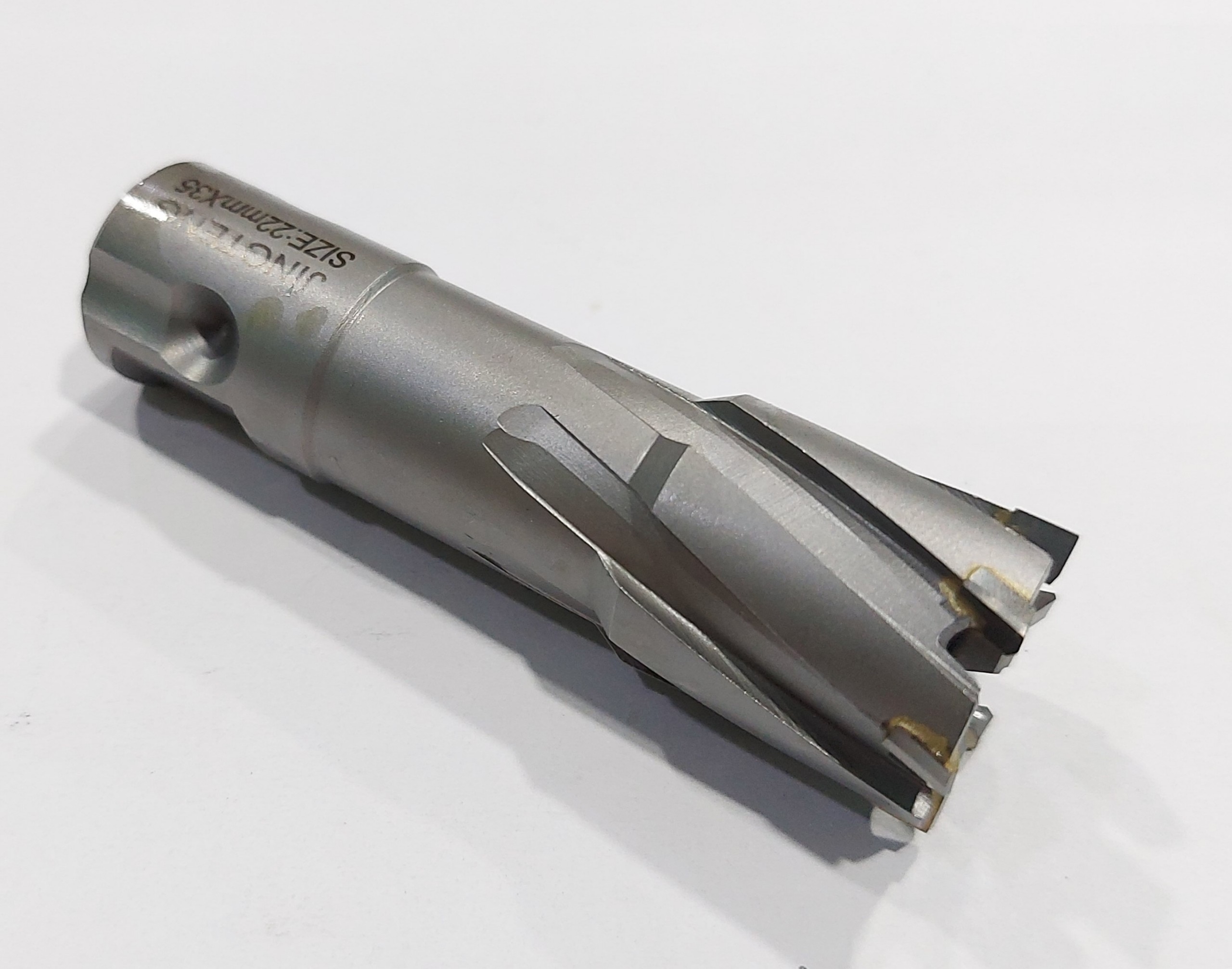 Mũi khoan từ hợp kim hiệu JINGTEN TCT 20x35 đường kính khoan phi 20mm, khoan sâu tối đa 35mm, răng mũi được gắn chíp hợp kim siêu cứng, cho phép khoan được trên các vật liệu kim loại cứng, bao gồm cả inox.