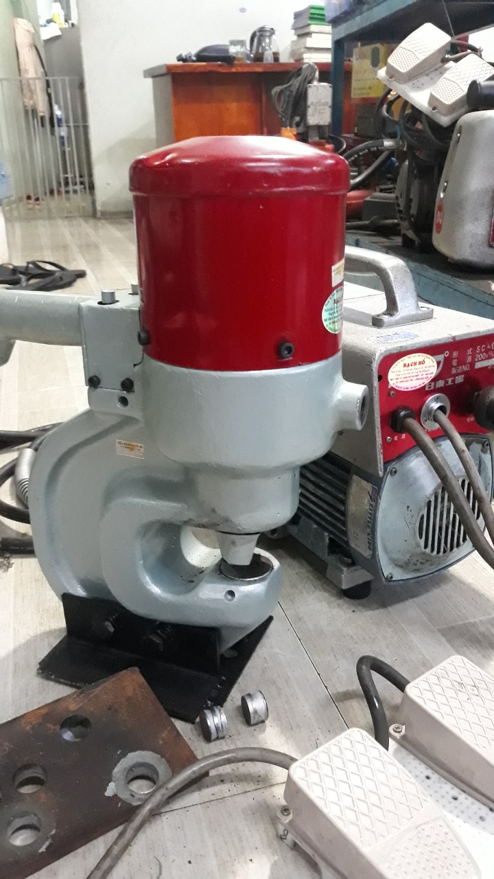 Đột cho sắt dầy 16mm, đường kính mũi lớn nhất 24mm, họng sâu 70mm.